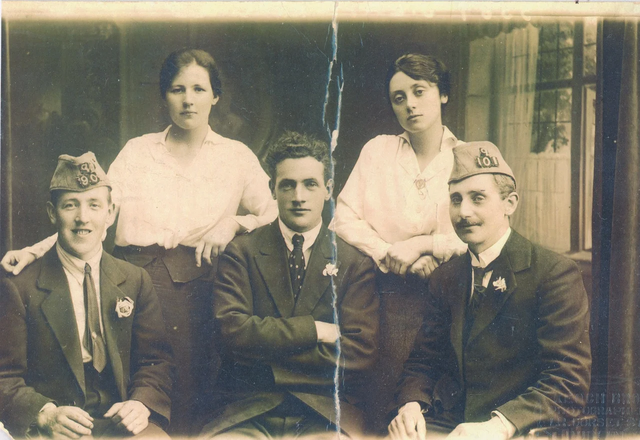 Kathleen Boland (back left) with Ena Shouldice, and (front row, l-r) Harry Boland, an unknown friend and Jack Shouldice