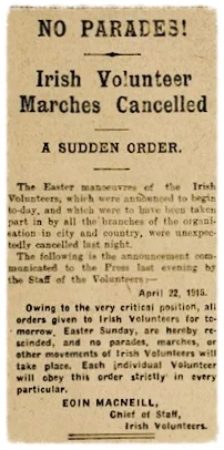 Eoin MacNeill's countermanding order which appeared in the Easter Sunday newspapers in 1916.