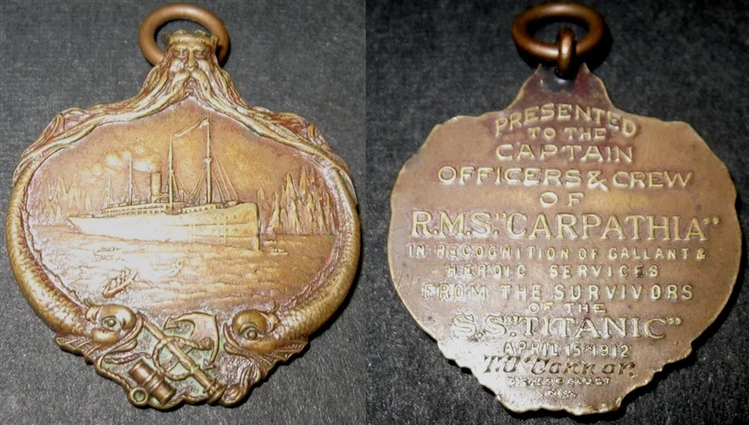 The medal awarded to Tommy O'Connor in recognition of his efforts in helping to rescue people from the sinking Titanic.