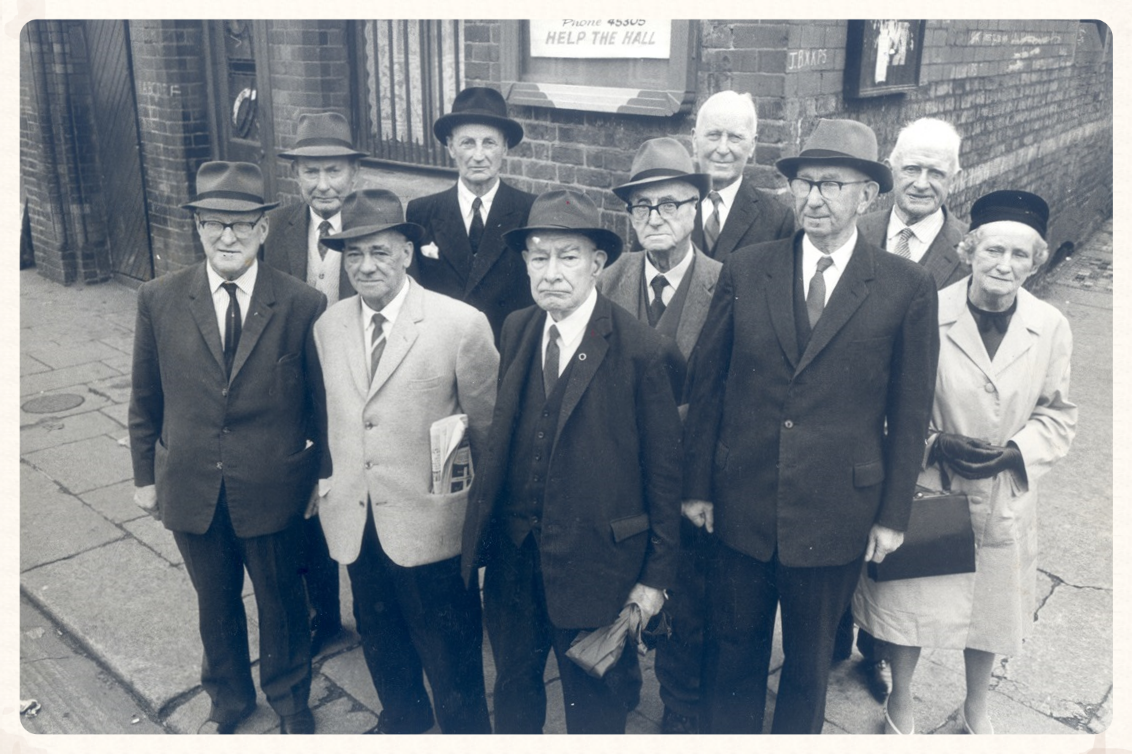 Survivors of the 1st Battalion together again outside Father Matthew Hall in 1964.
